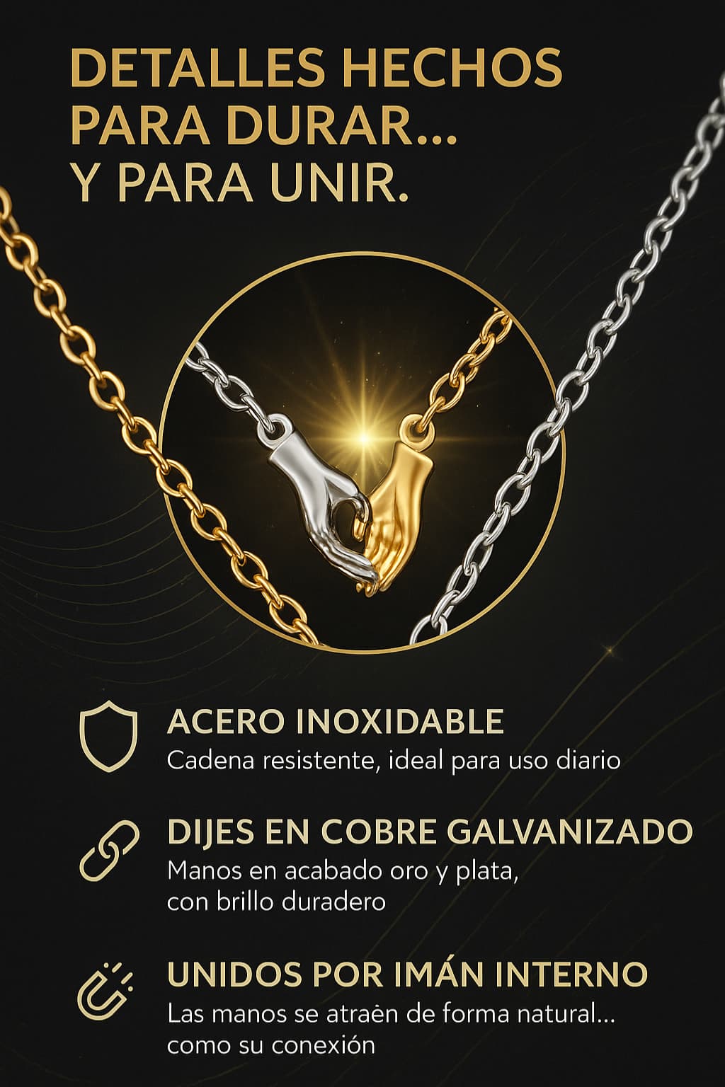 La cadena es de acero inoxidable, pero no se recomienda mojar los dijes frecuentemente para prolongar el acabado.