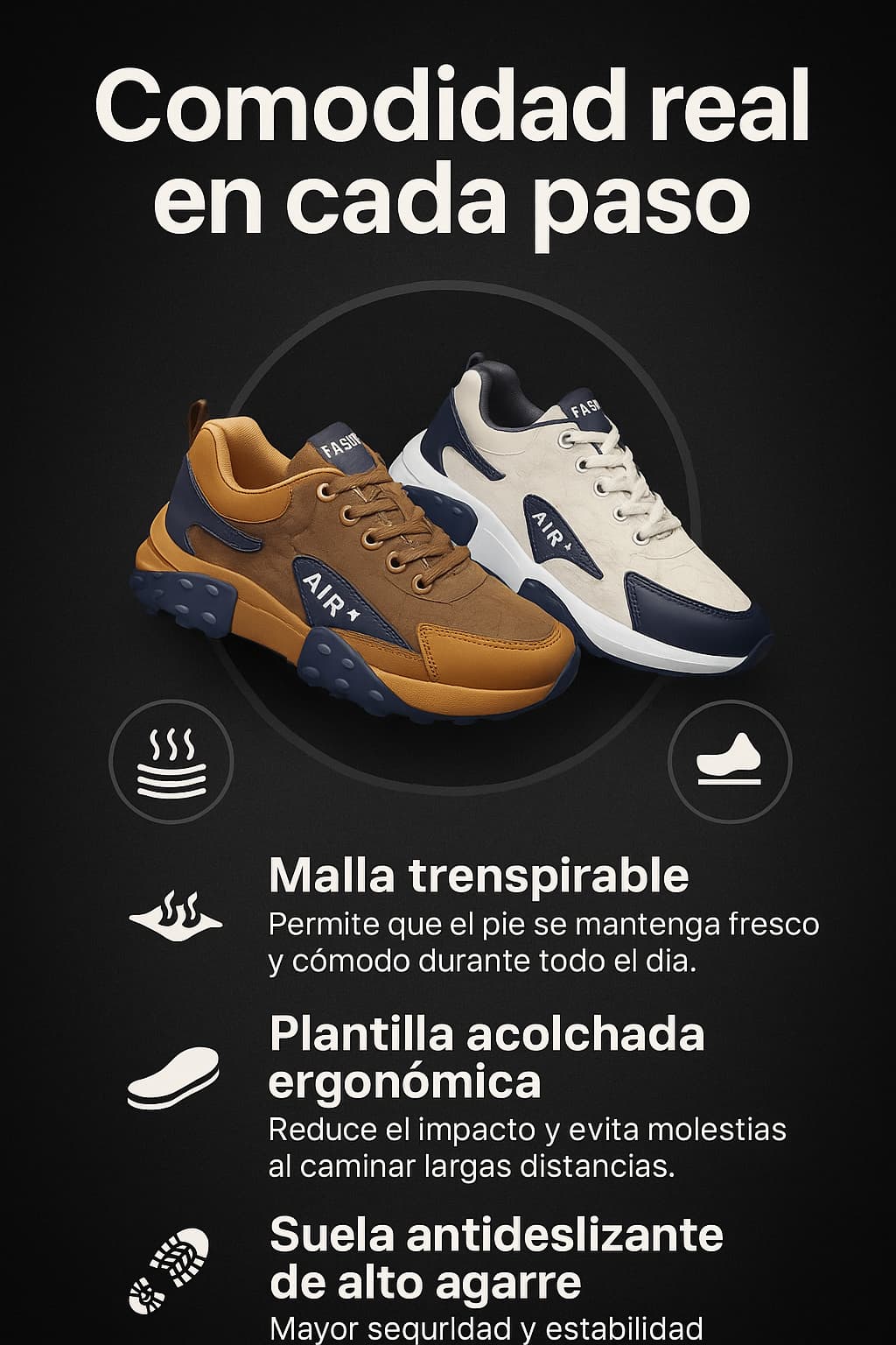 Sí. Están hechos con malla transpirable reforzada + cuero sintético premium que evita desgaste rápido y mantiene el color por más tiempo.